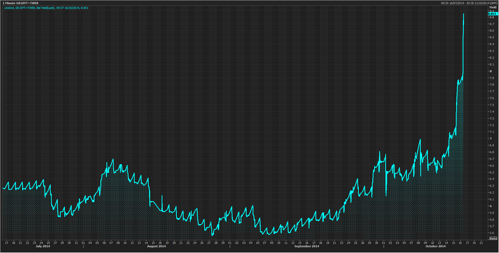Greek interest rates are up more than 200 basis points this week to 8.85%, as fears mount that the Greek government will have trouble re-financing its debt at rates that can be sustained. Are we headed for a Greek Crisis II, with the possibility that the banksters will get clipped this time?